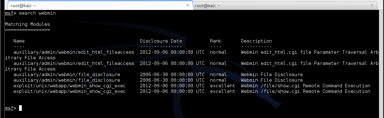 I decided to use auxiliary/admin/webmin/file_disclosure.