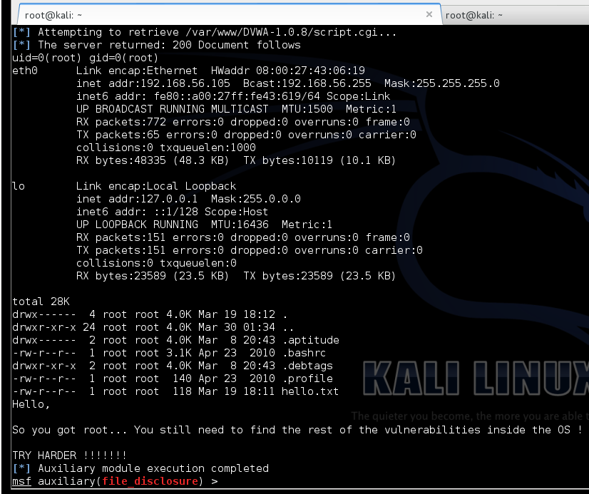 Using this flaw, I’ve been able to get /etc/shadow because we have root privileges.