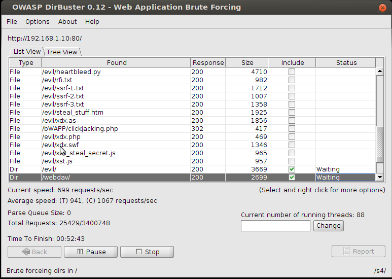 Moreover, I decided to launch DirBuster to retrieve folders/documents.