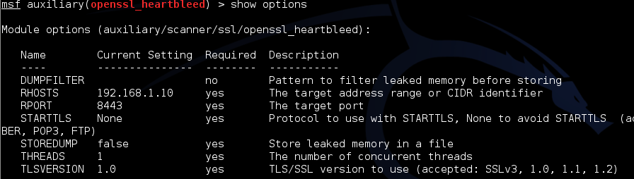 Fig. Configuring Heartbleed on port 8443