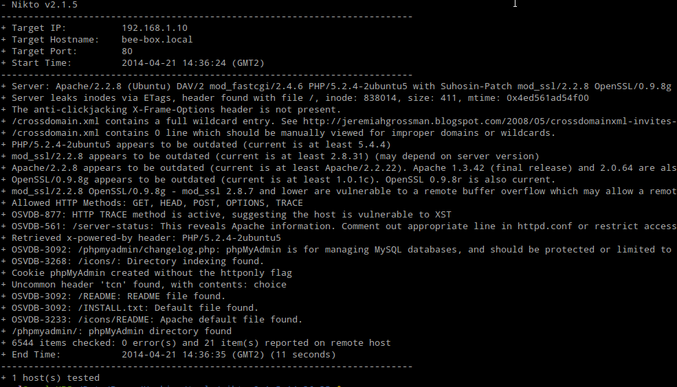 Fig. Nikto report on ports 80 (HTTP)